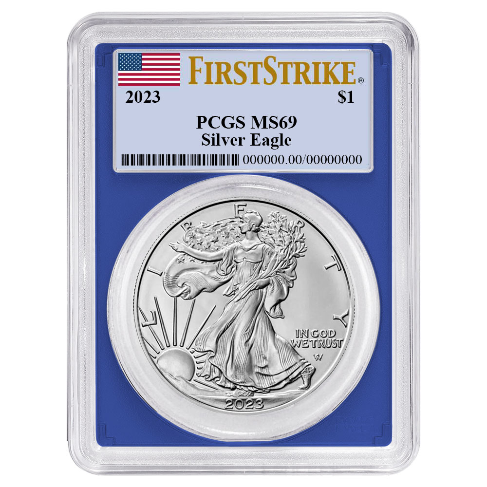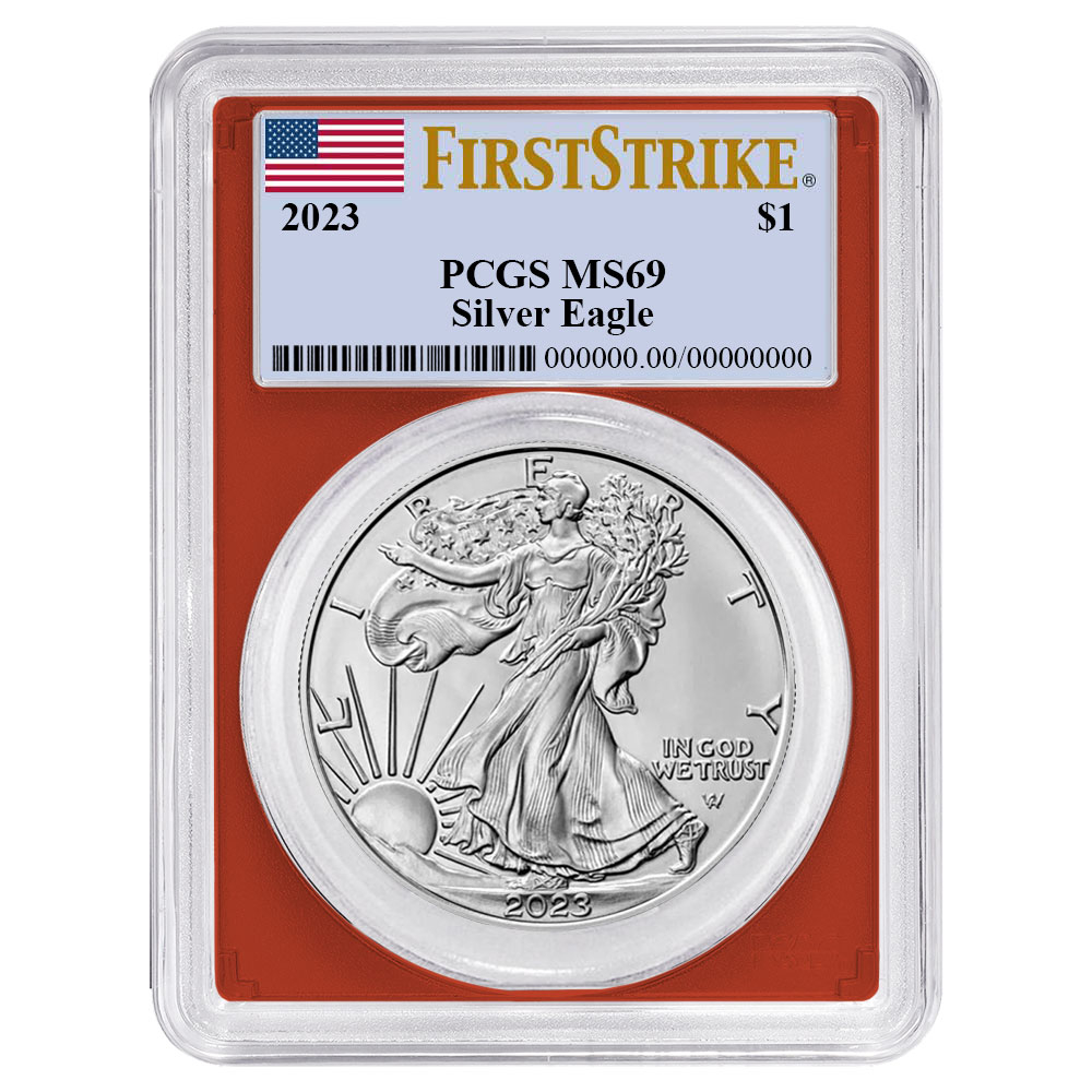 3pc Set – 2023 $1 1-oz American Silver Eagle PCGS MS69 FS Flag Label Red White Blue