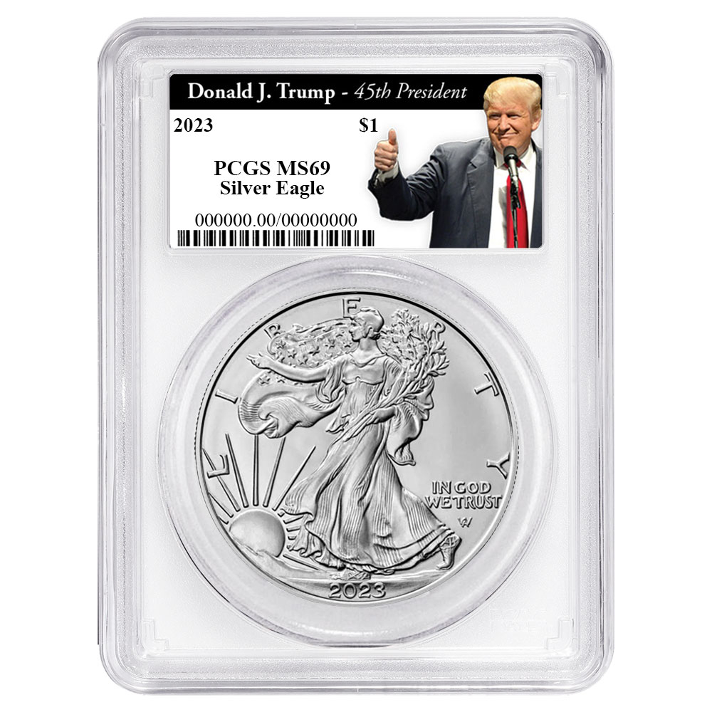 3pc Set – 2023 $1 1-oz American Silver Eagle PCGS MS69 Trump 45th Label Red White Blue