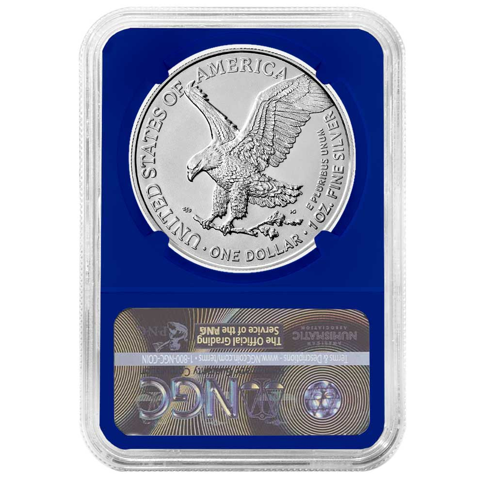 2023 $1 1-oz American Silver Eagle NGC MS69 Trump Label Blue Core