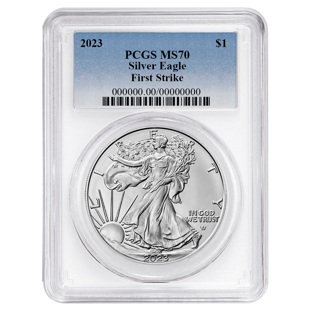 2023 $1 1-oz American Silver Eagle PCGS MS70 FS Blue Label White Frame