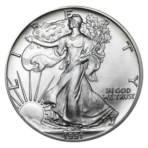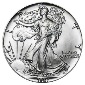 The American Silver Eagle is one of the world’s most popular silver bullion coins. Authorized by the Liberty Coin Act of 1985, these coins are made from one troy ounce of .999 fine silver and first went into production in 1986.
