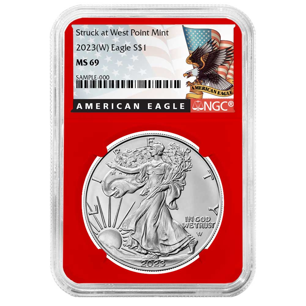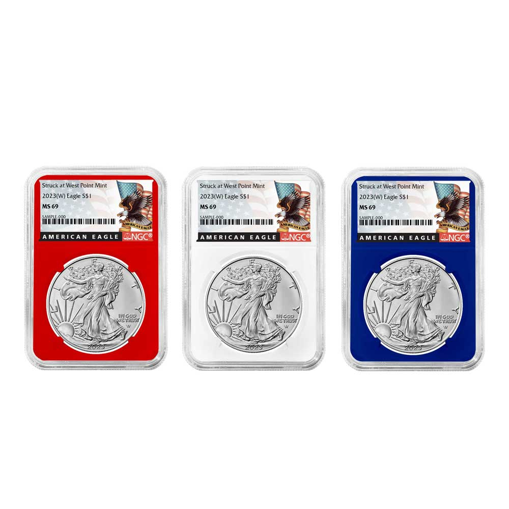 3pc Set – 2023 (W) $1 1-oz American Silver Eagle NGC MS69 Black Label Red White Blue