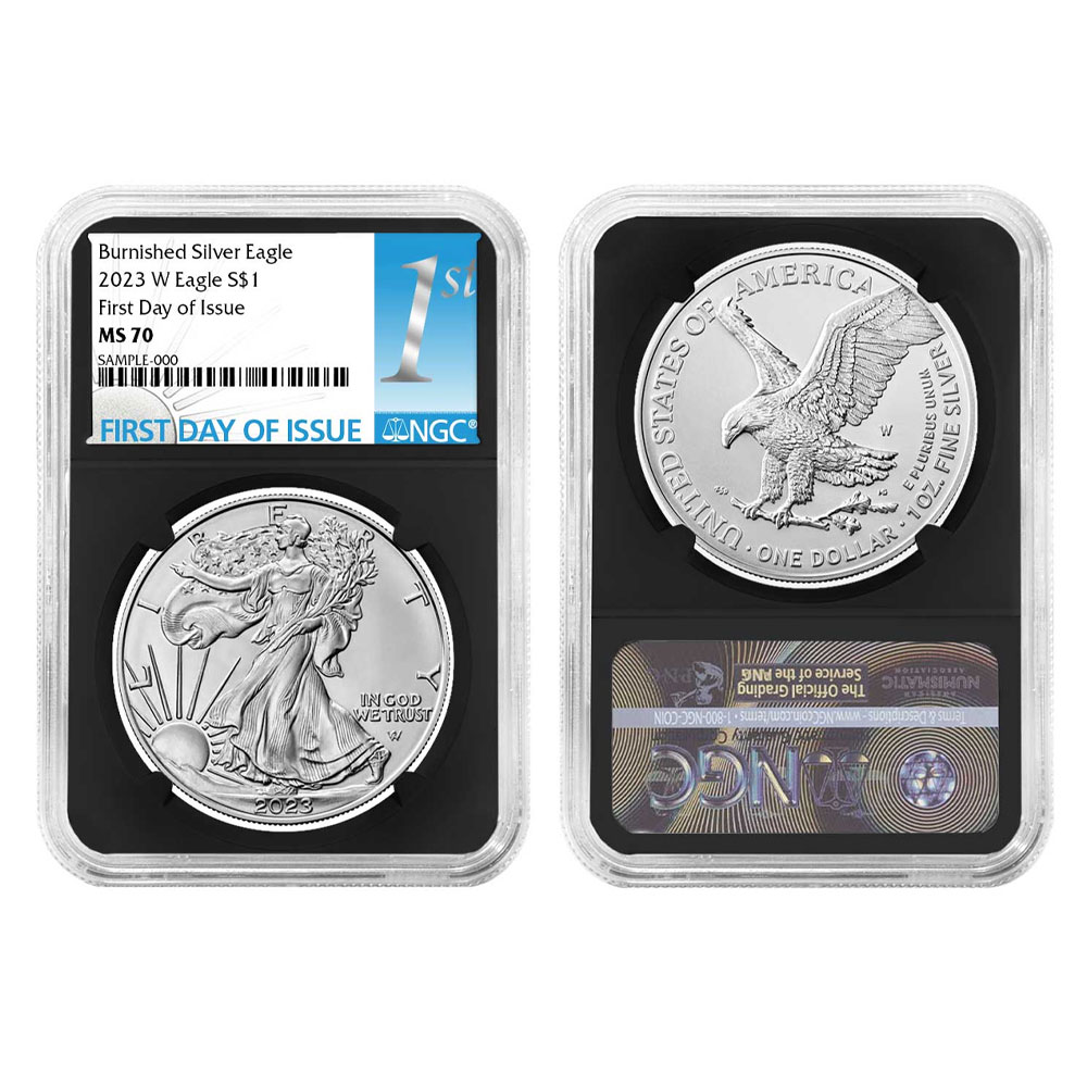 2023-W $1 1-oz Burnished American Silver Eagle NGC MS70 FDI First Label Retro Core