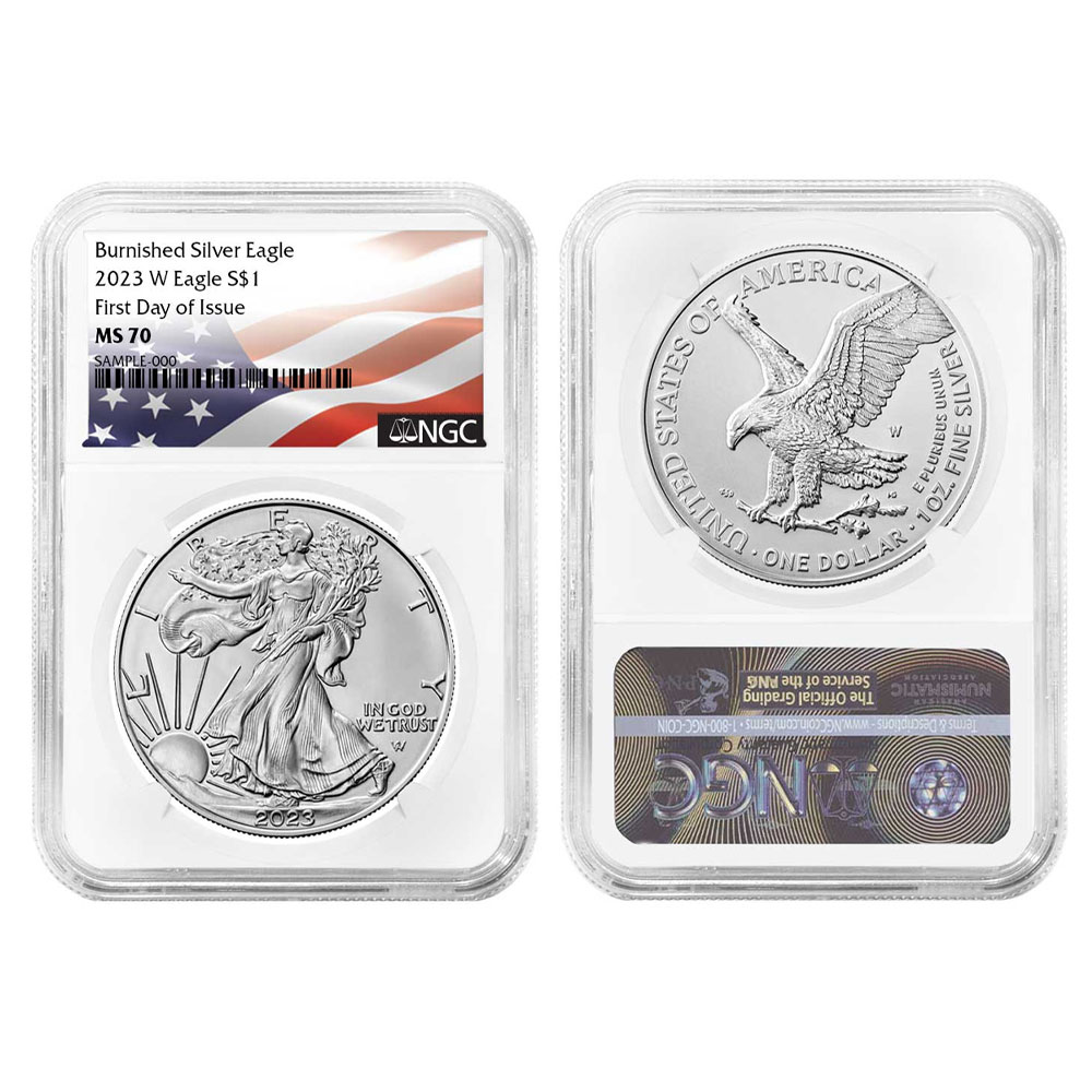 2023-W $1 1-oz Burnished American Silver Eagle NGC MS70 FDI Flag Label
