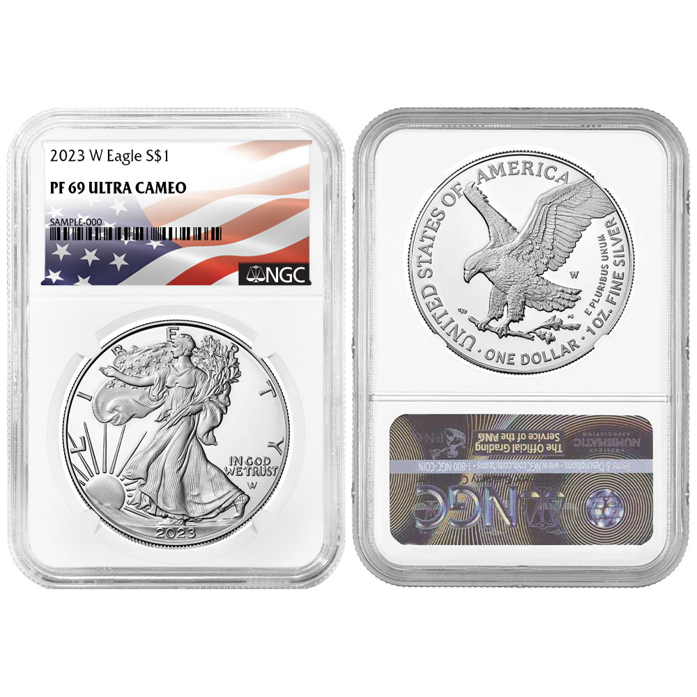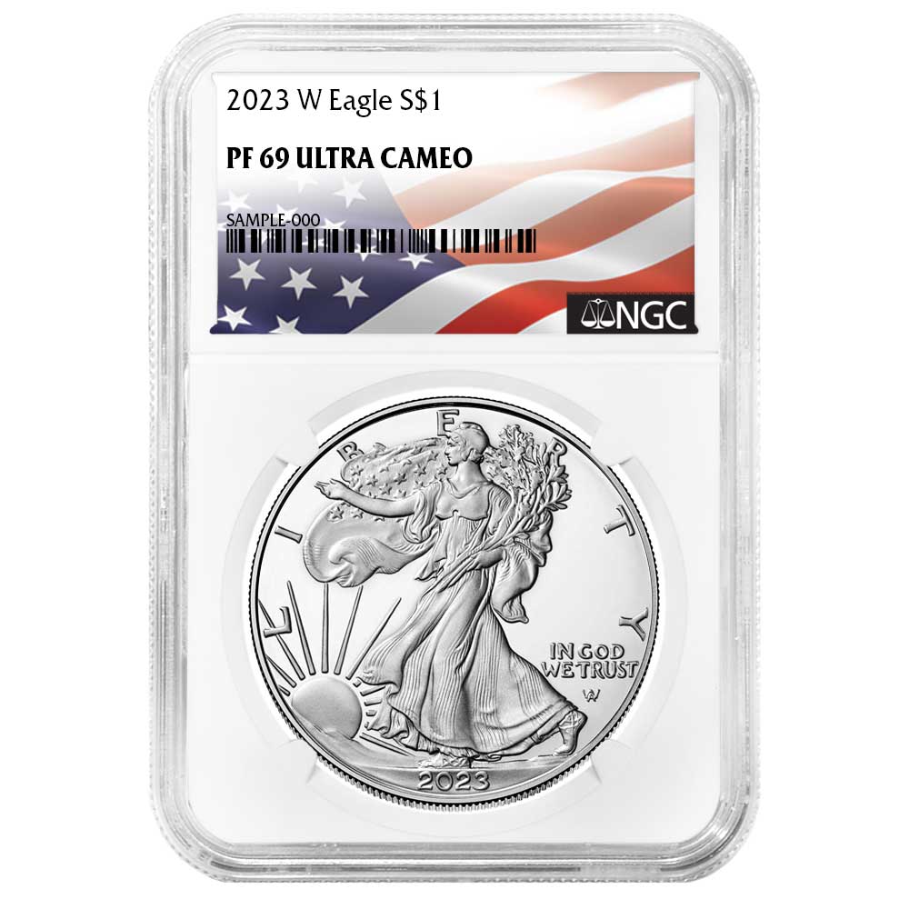 2023-W $1 1-oz Proof American Silver Eagle NGC PF69UC Flag Label
