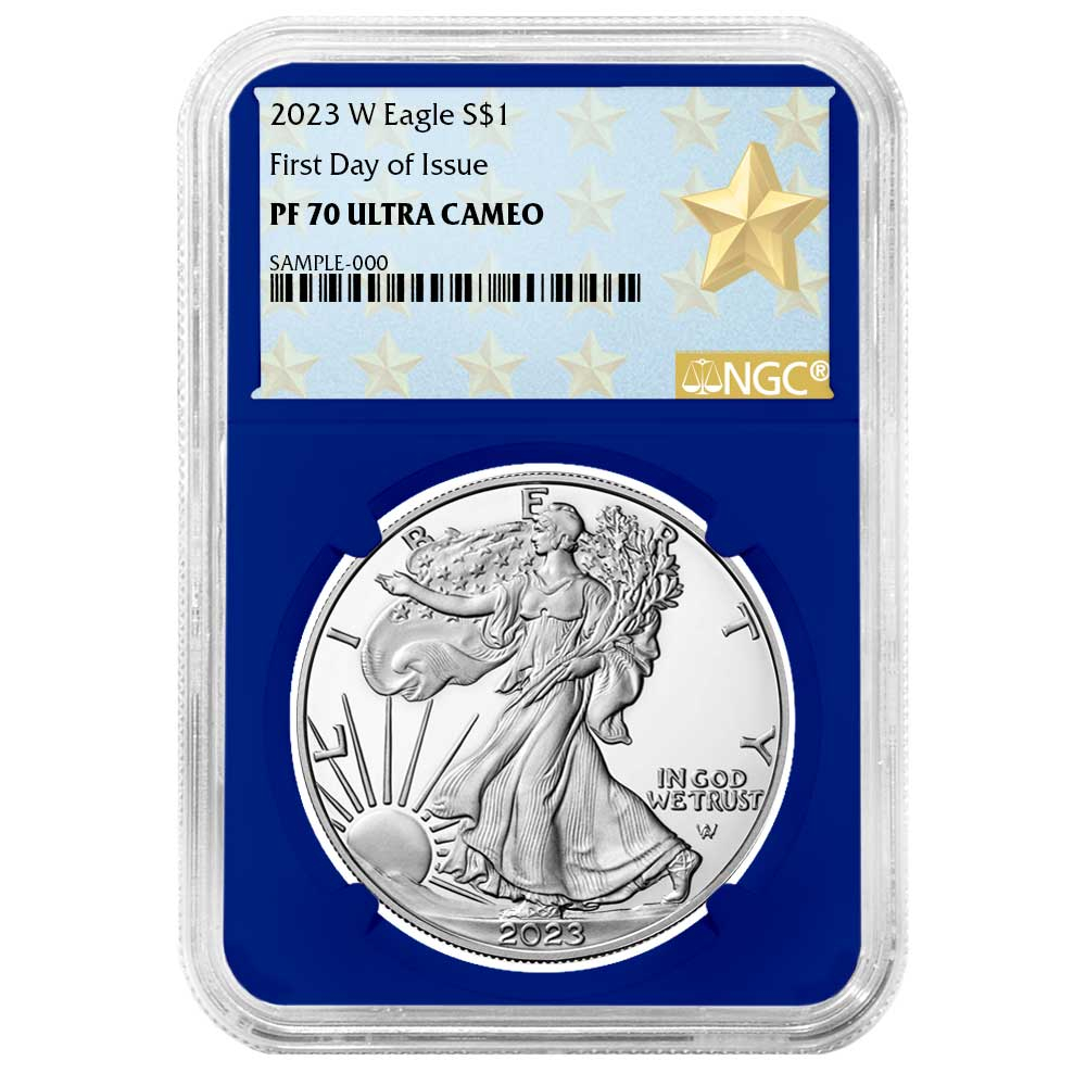 2023-W $1 1-oz Proof American Silver Eagle NGC PF70UC FDI West Point Star Label Blue Core