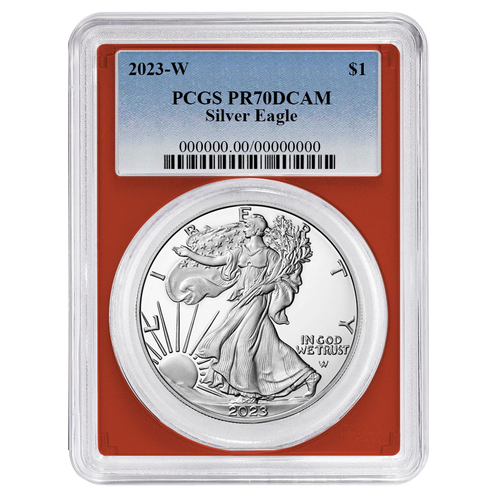 2023-W $1 1-oz Proof American Silver Eagle PCGS PR70DCAM Blue Label Red Frame