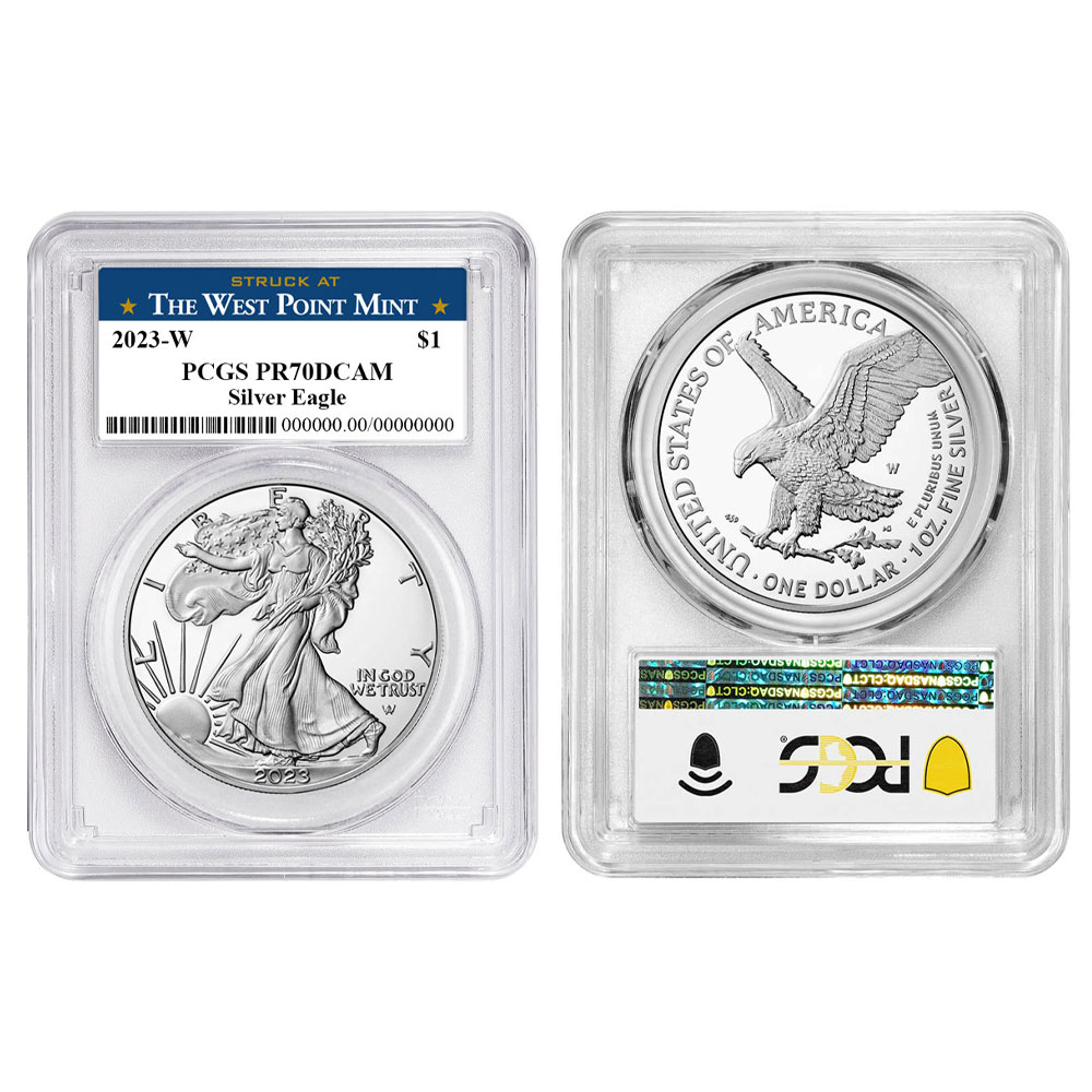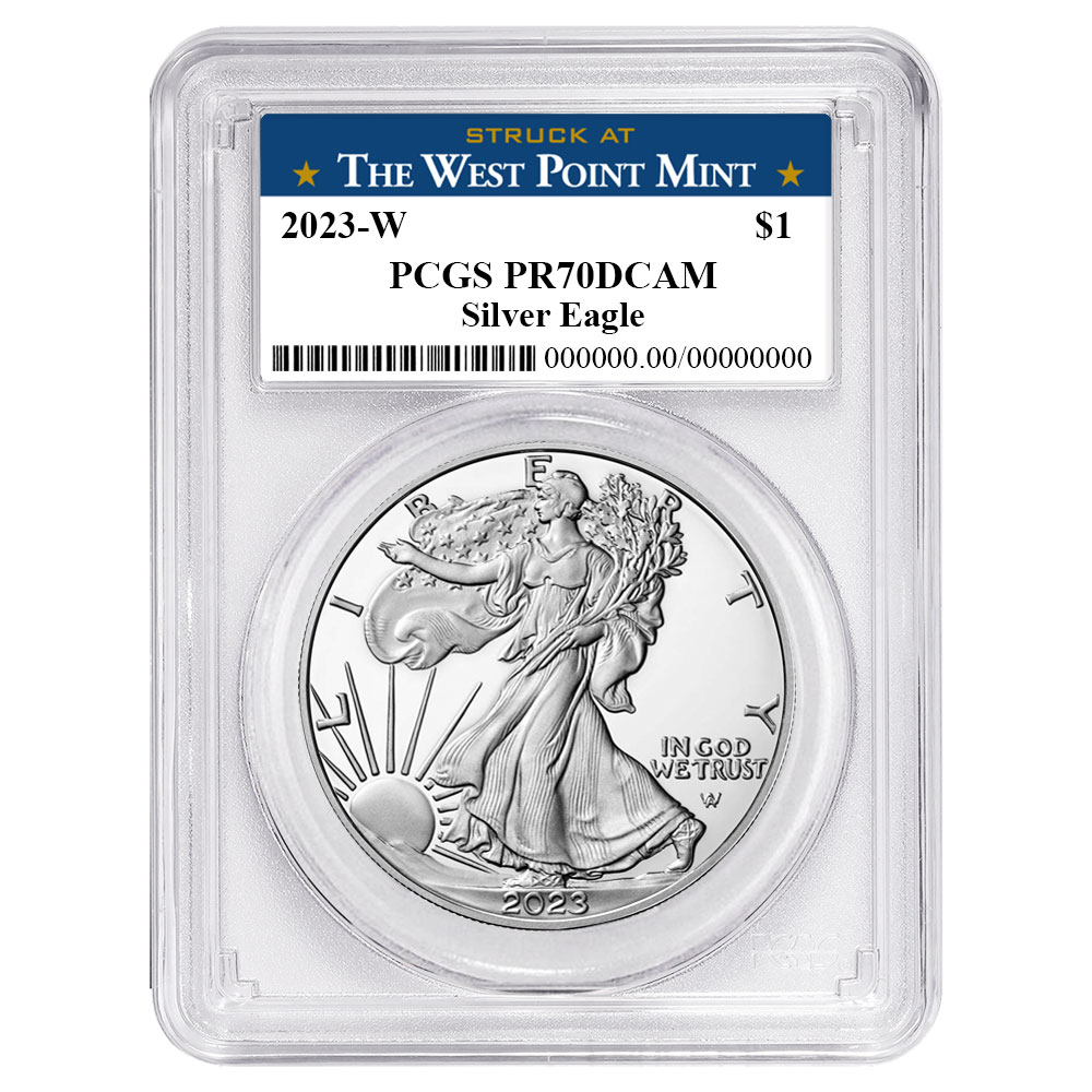 2023-W $1 1-oz Proof American Silver Eagle PCGS PR70DCAM West Point Label