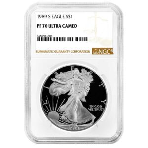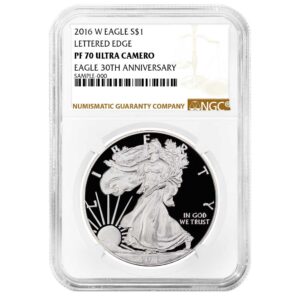 The American Silver Eagle is one of the world’s most popular silver bullion coins. Authorized by the Liberty Coin Act of 1985, these coins are made from one troy ounce of .999 fine silver and first went into production in 1986.
