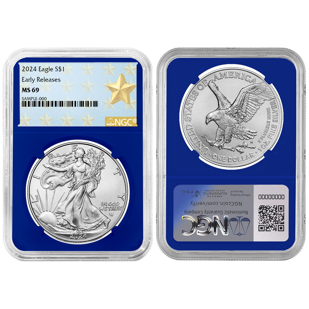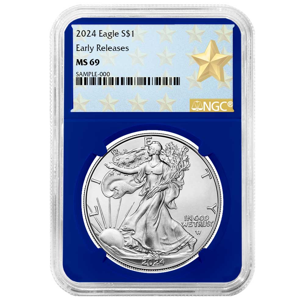 2024 $1 1-oz American Silver Eagle NGC MS69 ER West Point Star Label Blue Core