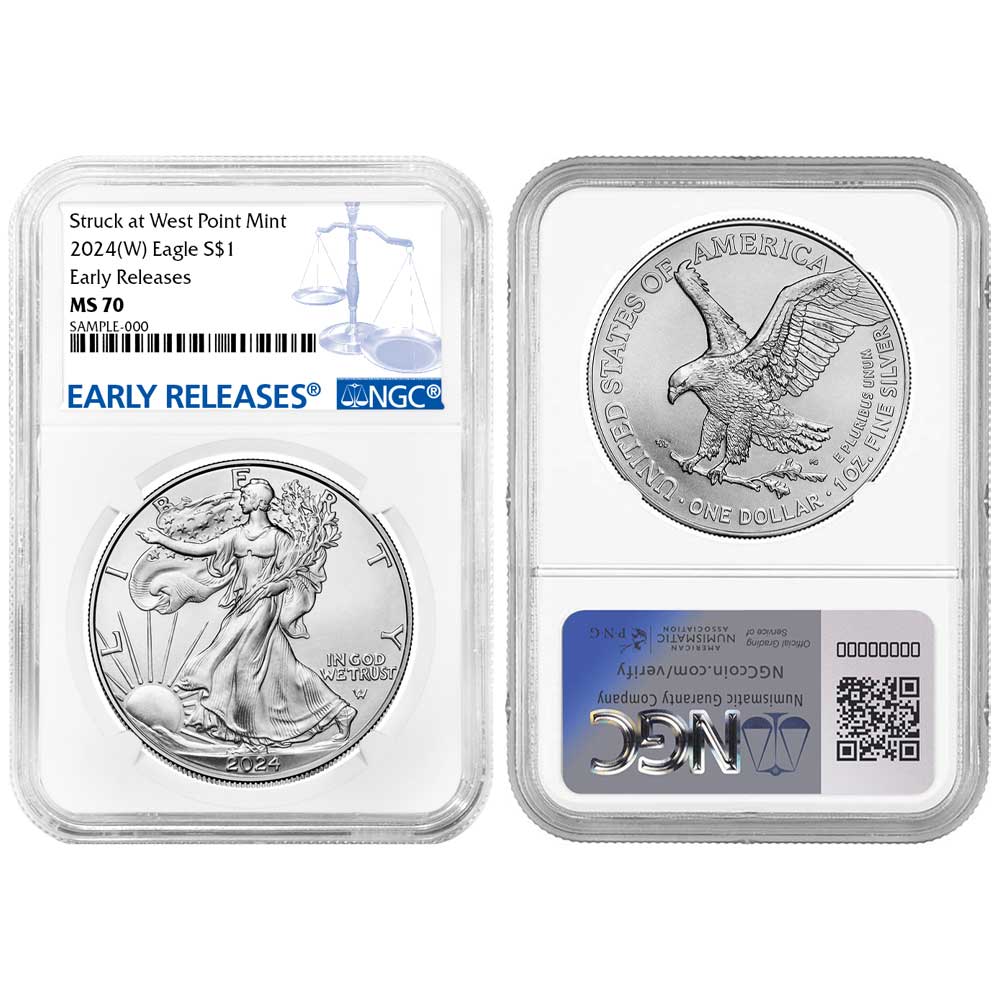 2024 (W) $1 1-oz American Silver Eagle NGC MS70 ER Blue Label