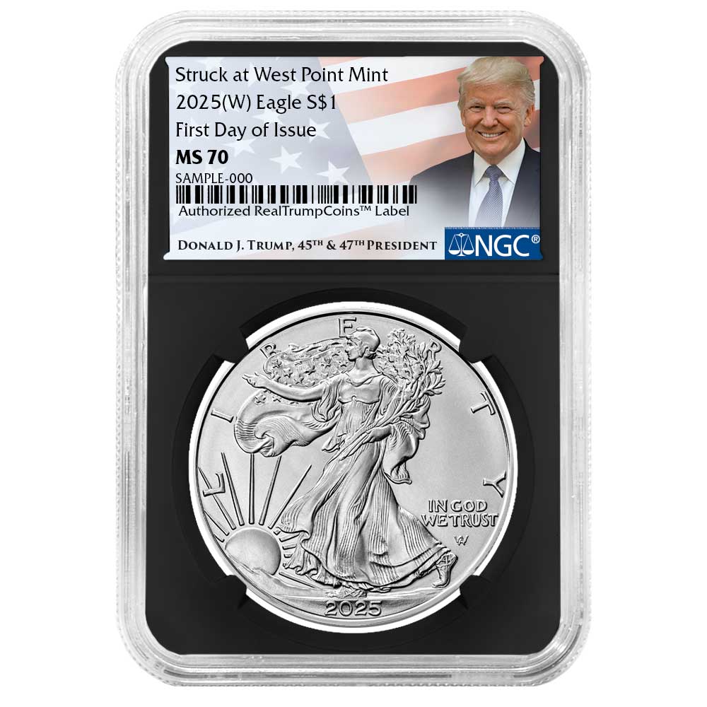 2025 $1 1-oz American Silver Eagle NGC MS70 FDI Trump Label Retro Core