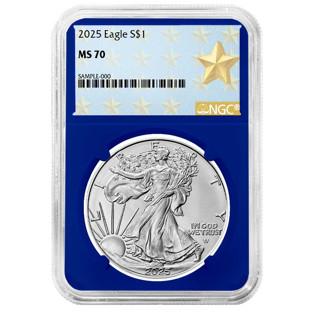2025 $1 1-oz American Silver Eagle NGC MS70 West Point Star Label Blue Core
