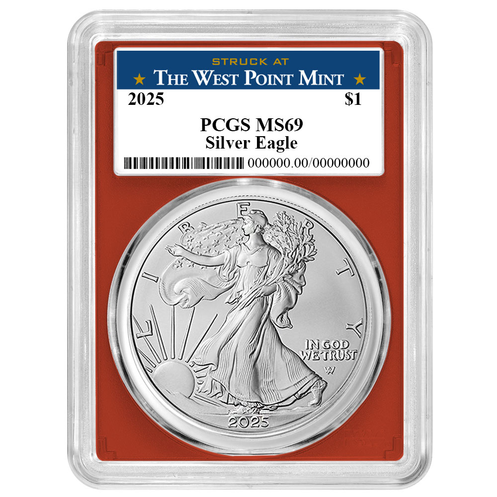 2025 $1 1-oz American Silver Eagle PCGS MS69 West Point Label Red Frame
