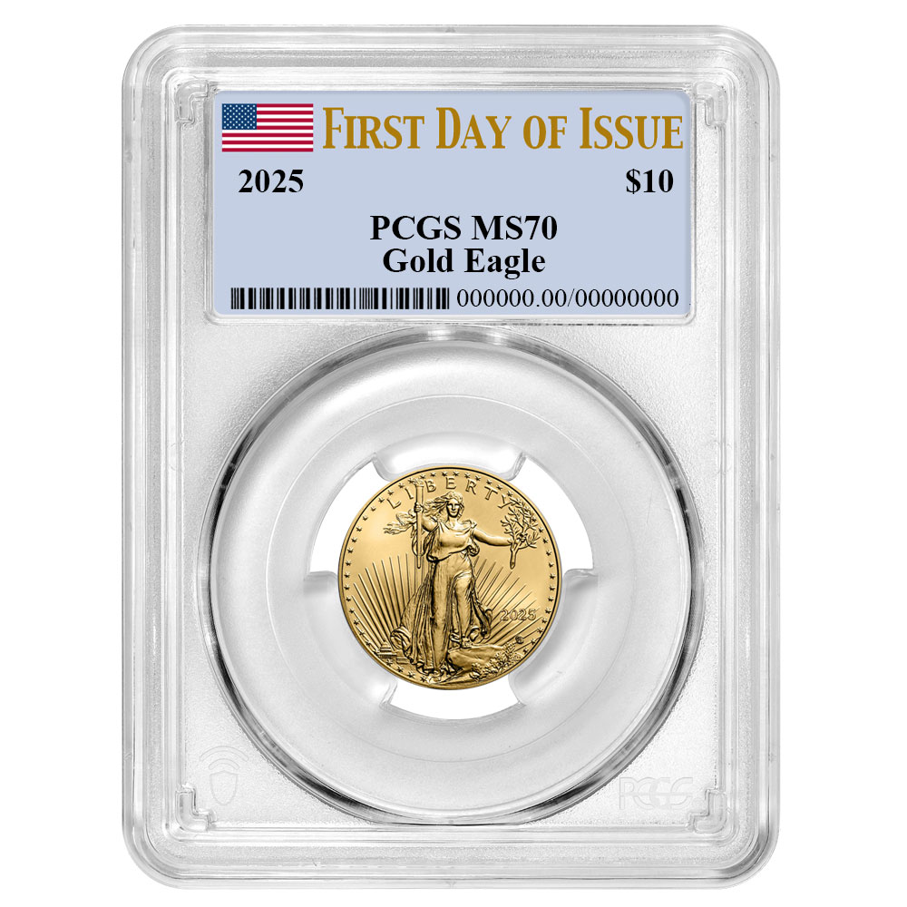2025 $10 1/4-oz American Gold Eagle PCGS MS70 FDOI Flag Label