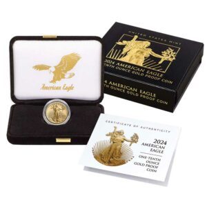 The American Gold Eagle is one of the most sought-after gold bullion coins in the world. Authorized by the Gold Bullion Coin Act of 1985, these coins are produced in 4 sizes, 1, 1/2, 1/4, and 1/10 troy ounce all in .9167 fine gold.