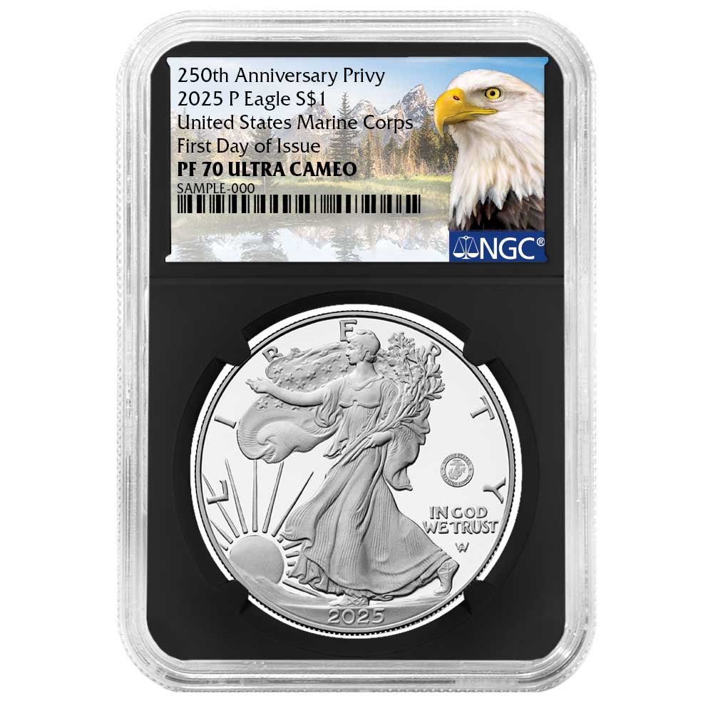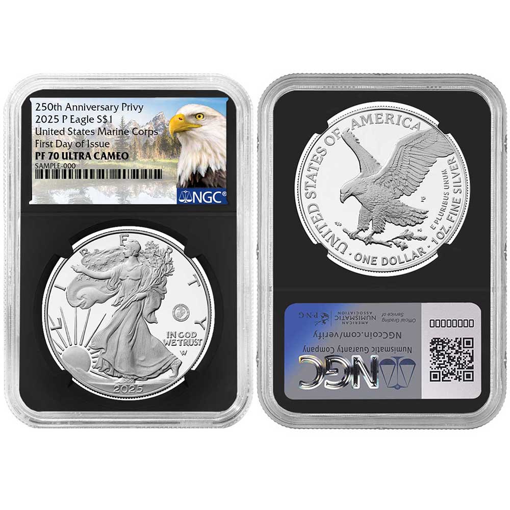 2025-P $1 1-oz Proof American Silver Eagle Marine Corps Privy NGC PF70UC FDI Eagle Label Retro Core