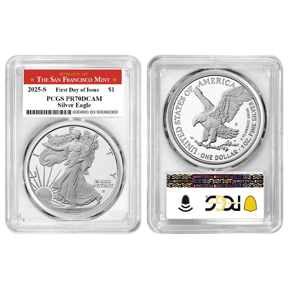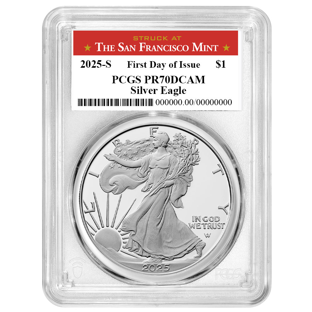 2025-S $1 1-oz Proof American Silver Eagle PCGS PR70DCAM FDOI San Francisco Label