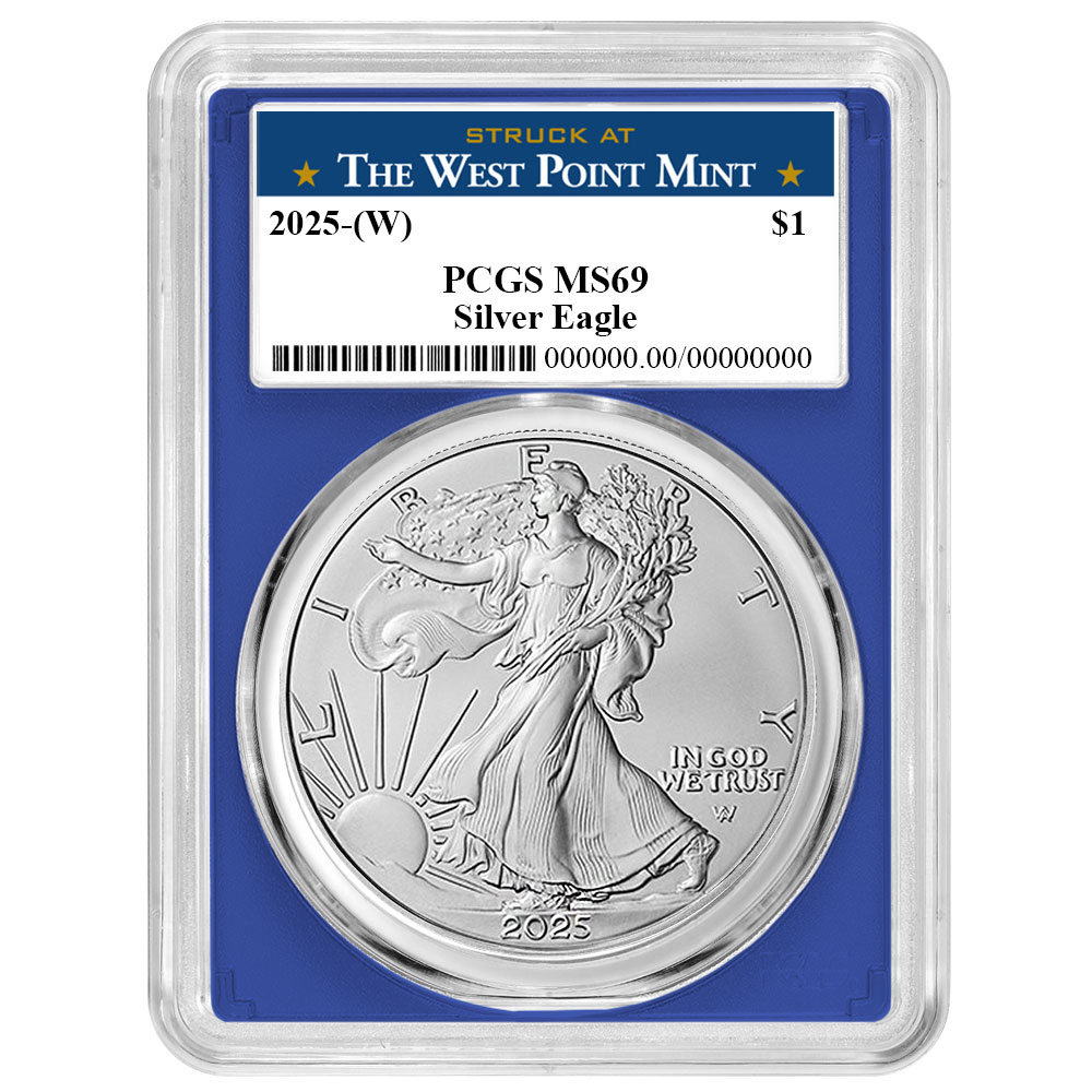 2025 (W) $1 1-oz American Silver Eagle PCGS MS69 West Point Label Blue Frame