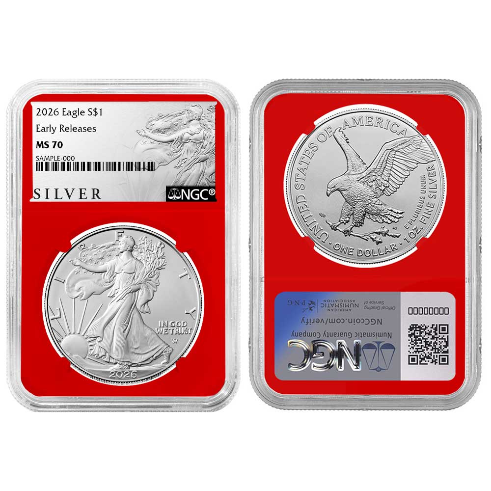 2026 $1 1-oz American Silver Eagle NGC MS70 ER ALS Label Red Core