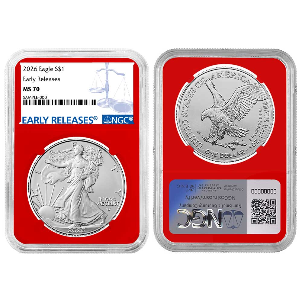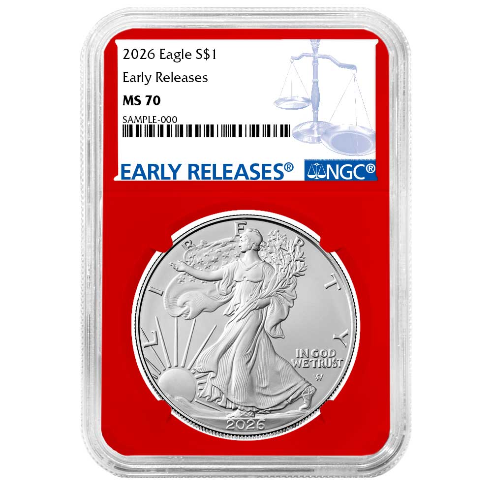 2026 $1 1-oz American Silver Eagle NGC MS70 ER Blue Label Red Core