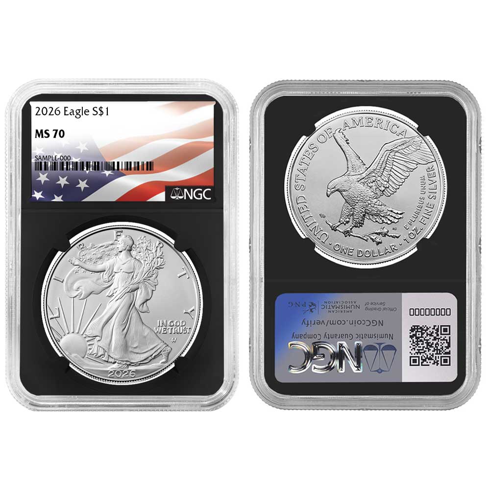 2026 $1 1-oz American Silver Eagle NGC MS70 Flag Label Retro Core