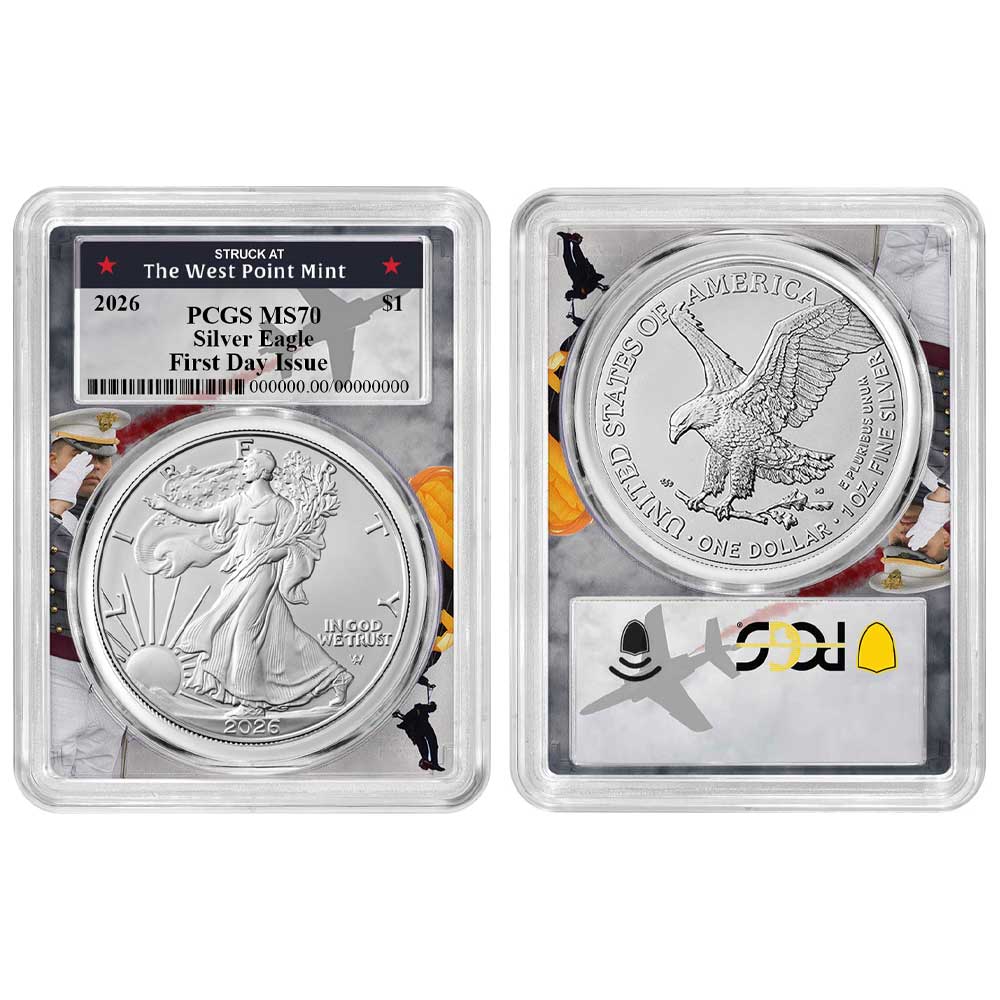2026 $1 1-oz American Silver Eagle PCGS MS70 FDOI West Point Frame