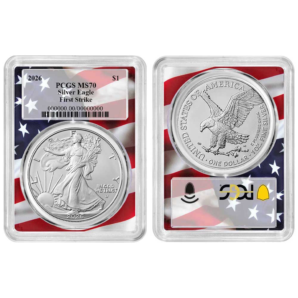 2026 $1 1-oz American Silver Eagle PCGS MS70 FS Flag Frame