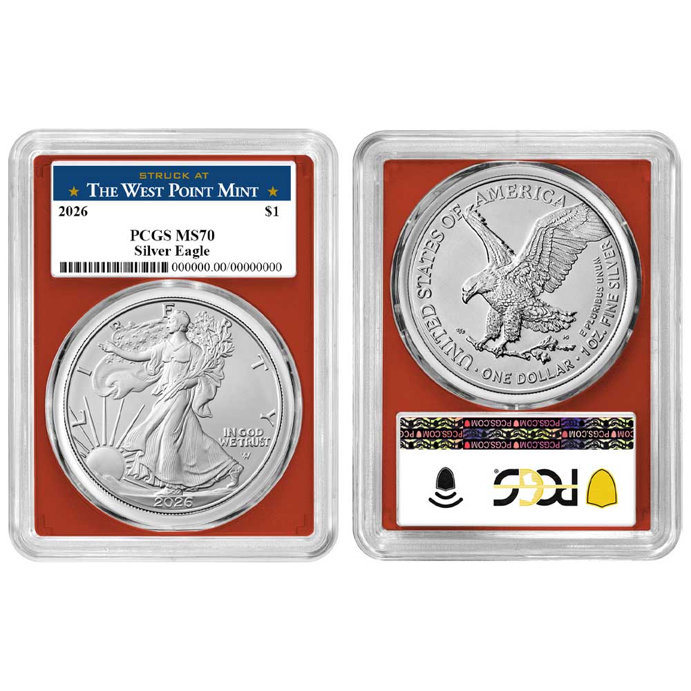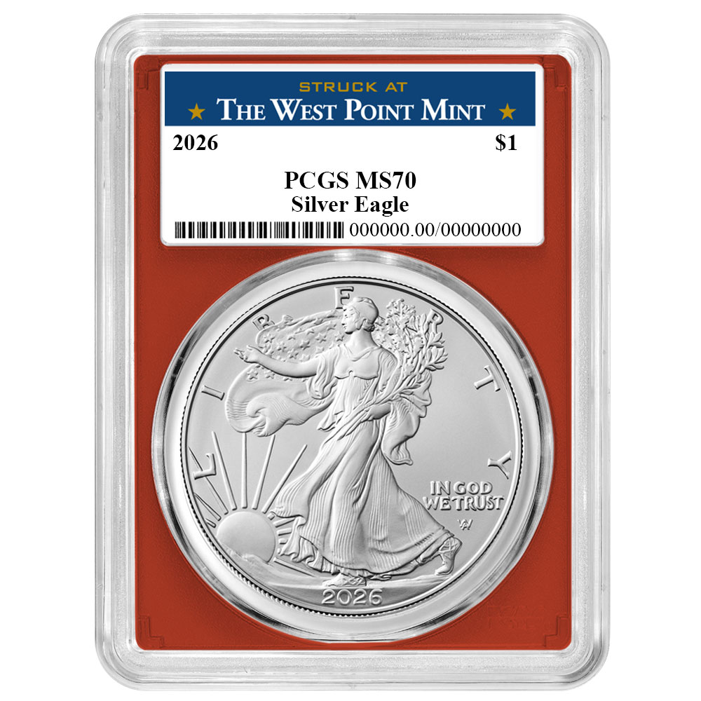 2026 $1 1-oz American Silver Eagle PCGS MS70 West Point Label Red Frame
