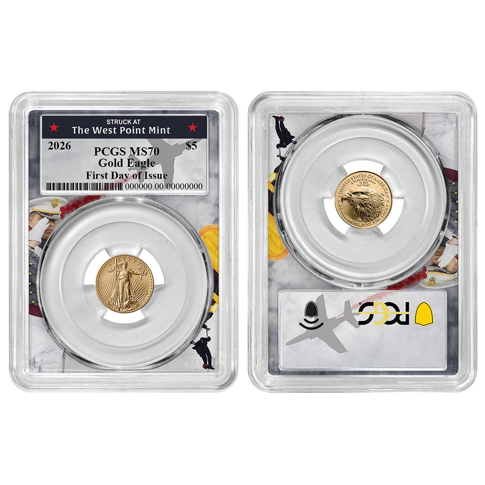 2026 $5 1/10-oz American Gold Eagle PCGS MS70 FDOI West Point Frame