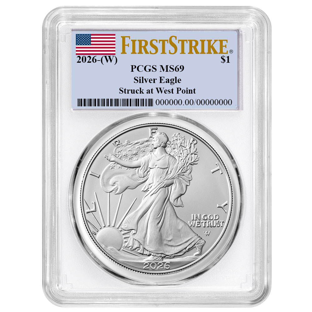 2026 (W) $1 1-oz American Silver Eagle PCGS MS69 FS Flag Label White Frame