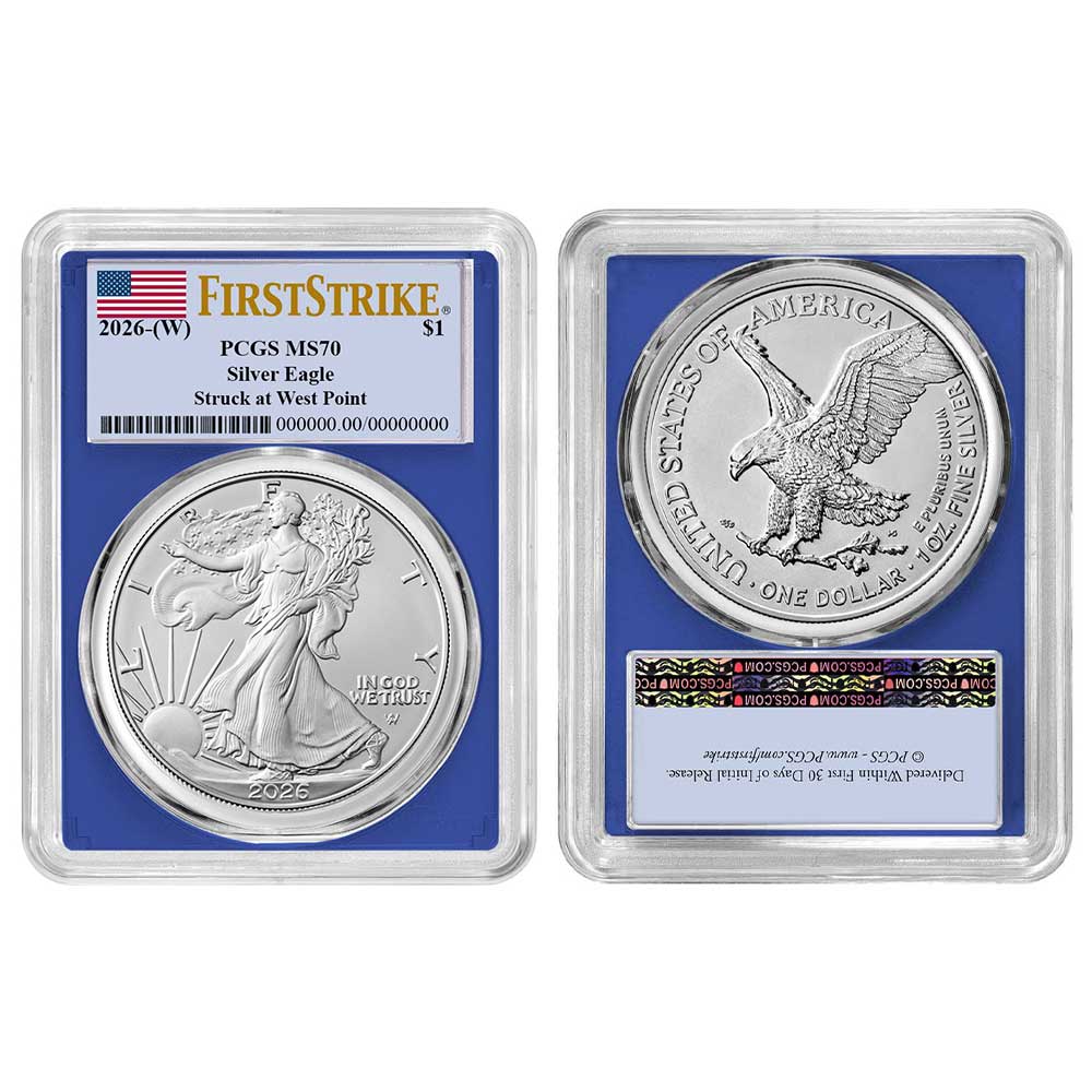 2026 (W) $1 1-oz American Silver Eagle PCGS MS70 FS Flag Label Blue Frame