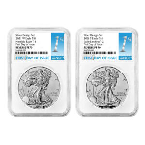 The American Silver Eagle is one of the world’s most popular silver bullion coins. Authorized by the Liberty Coin Act of 1985, these coins are made from one troy ounce of .999 fine silver and first went into production in 1986.
