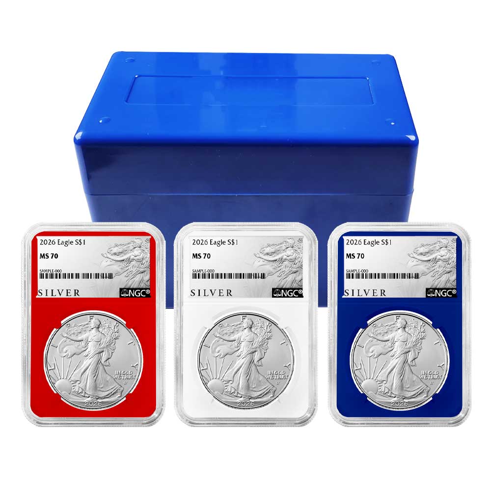 3pc Set – 2026 $1 1-oz American Silver Eagle NGC MS70 ALS Label Red White Blue