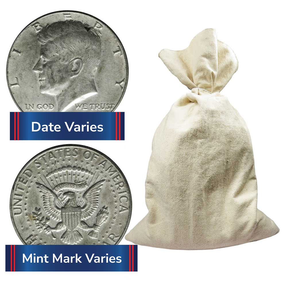 40% Silver Kennedy Half Dollars Average Circulated $100 Face Value Bag