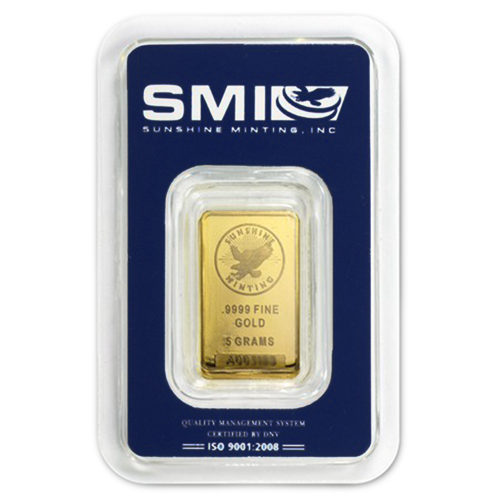 5-g Sunshine Mint .9999 Fine Gold Bar In Assay Mint Mark SI
