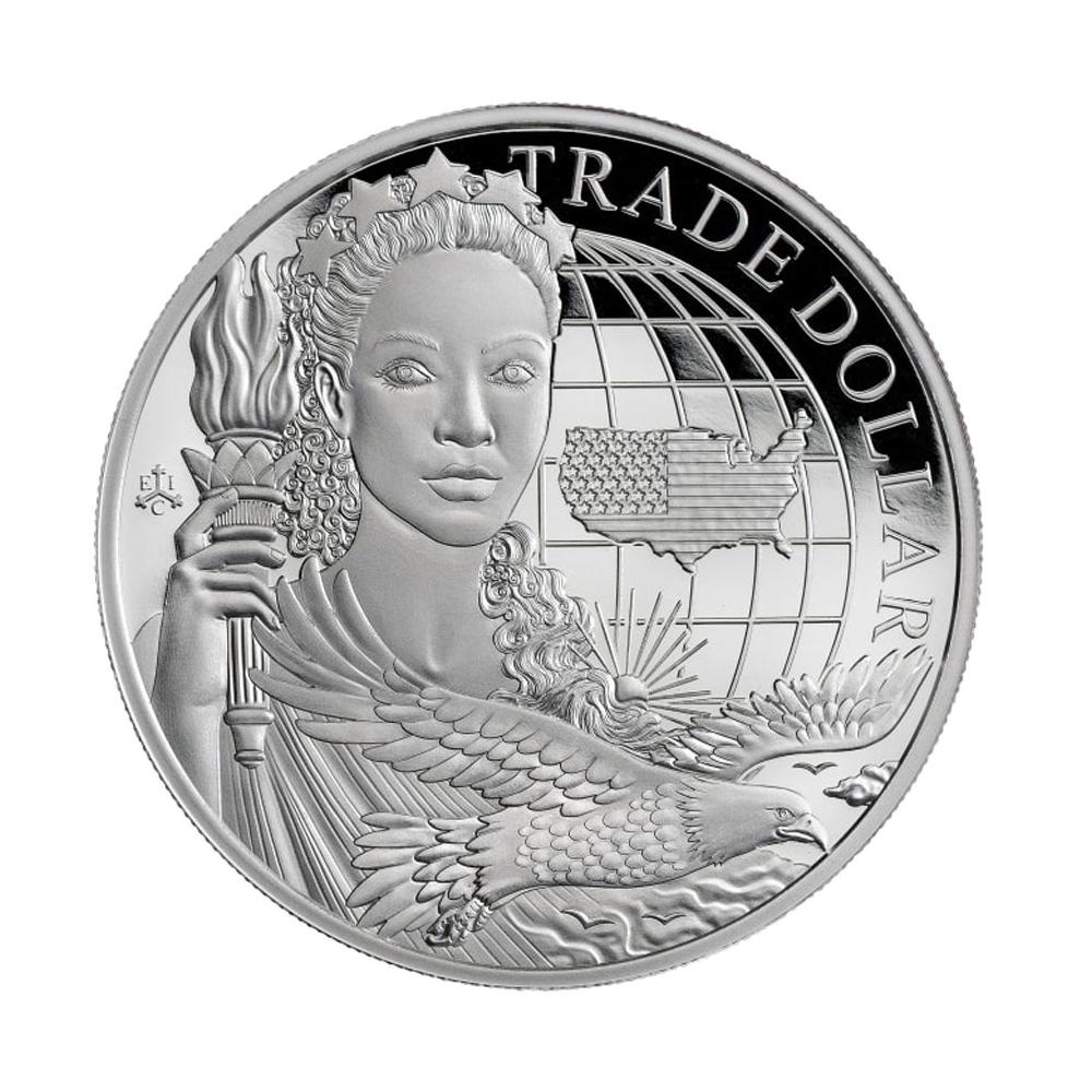 • The fourth design of the Modern Trade Dollar series is featured on the coin.