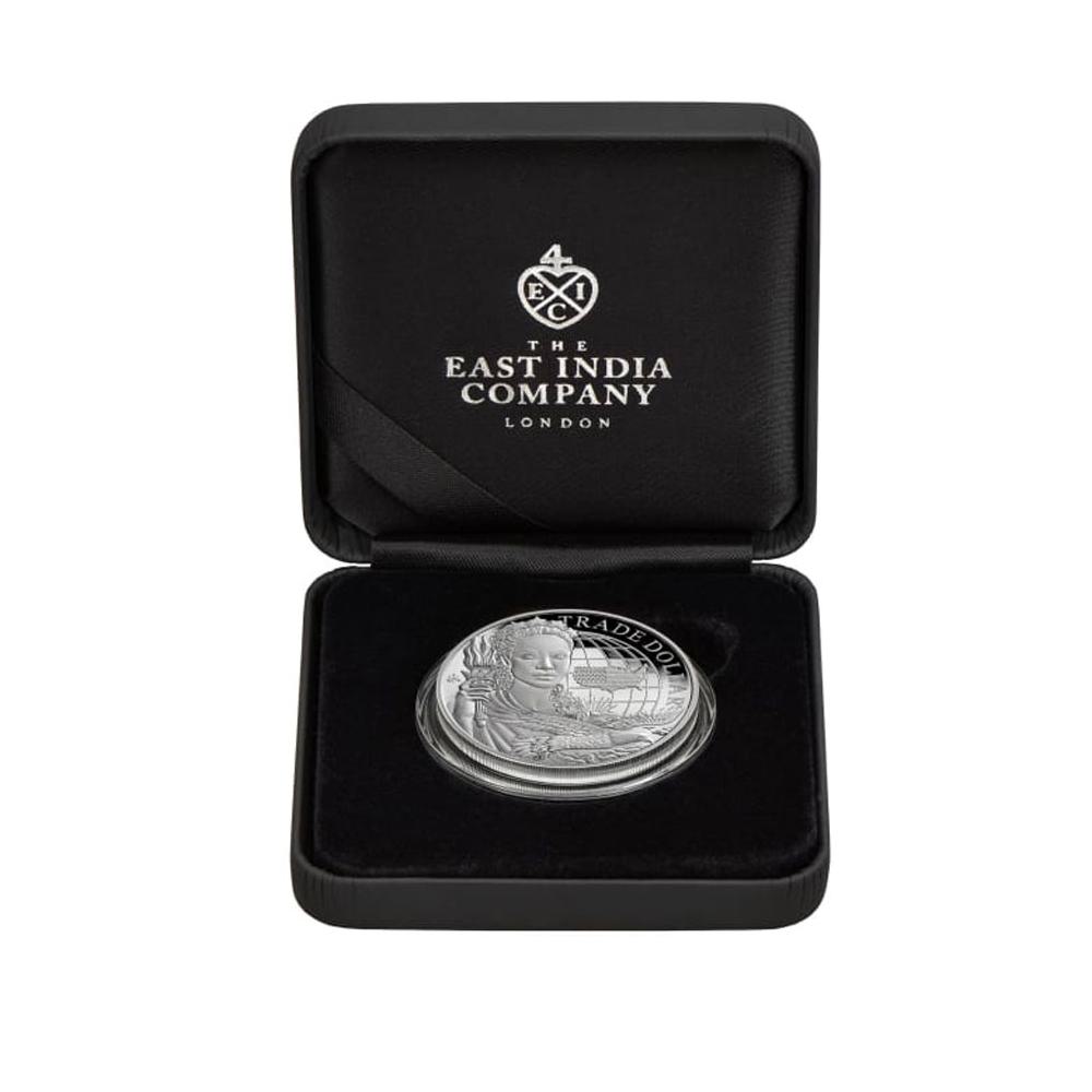• This 2023 U.S. Trade Dollar coin is a product of the East India Company in London.