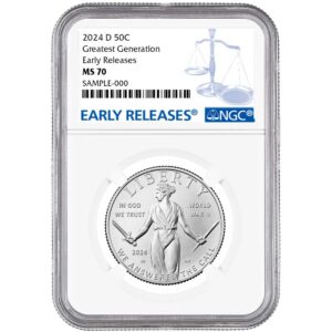 2024-D UNC Clad 50c Greatest Generation Commemorative NGC MS70 ER Blue Label
